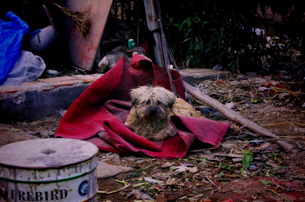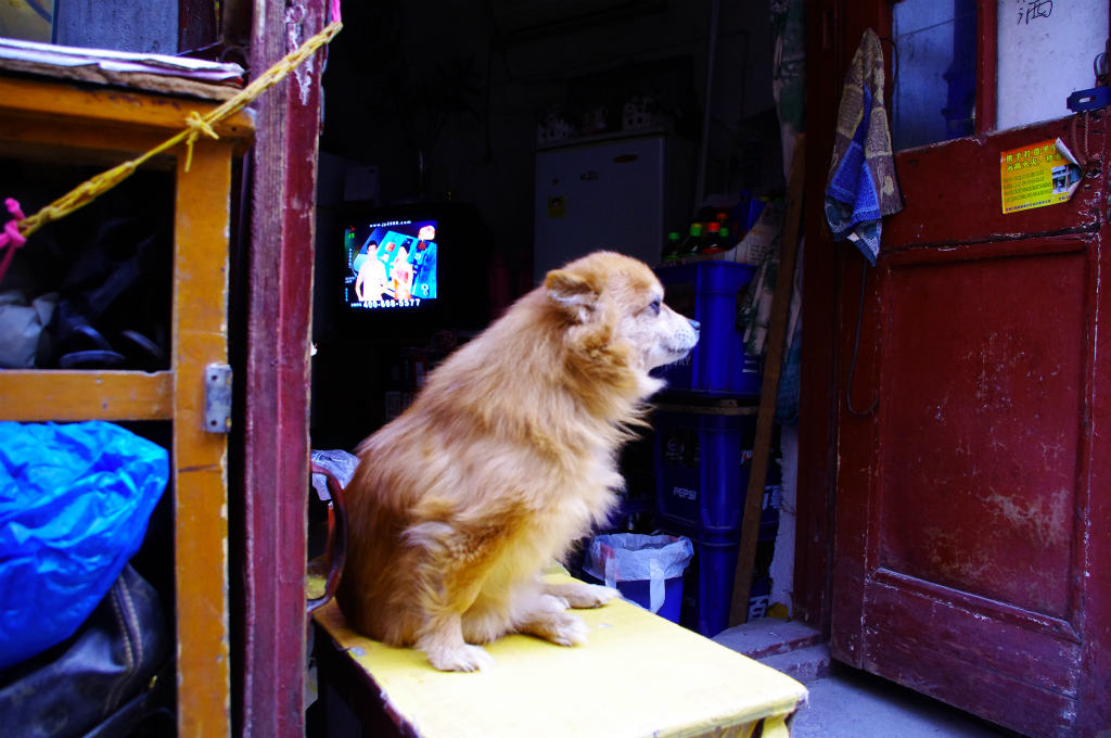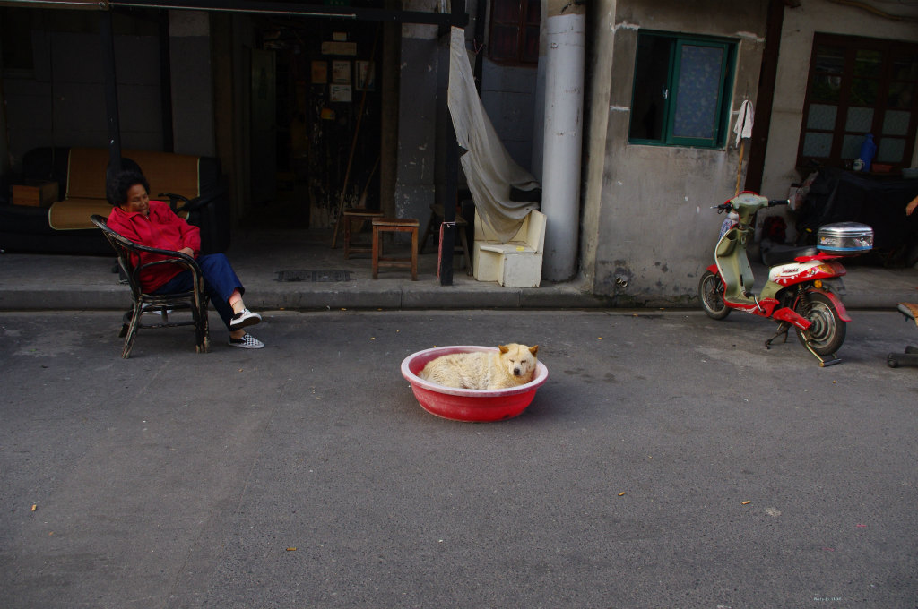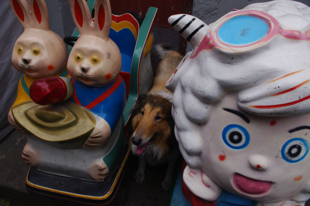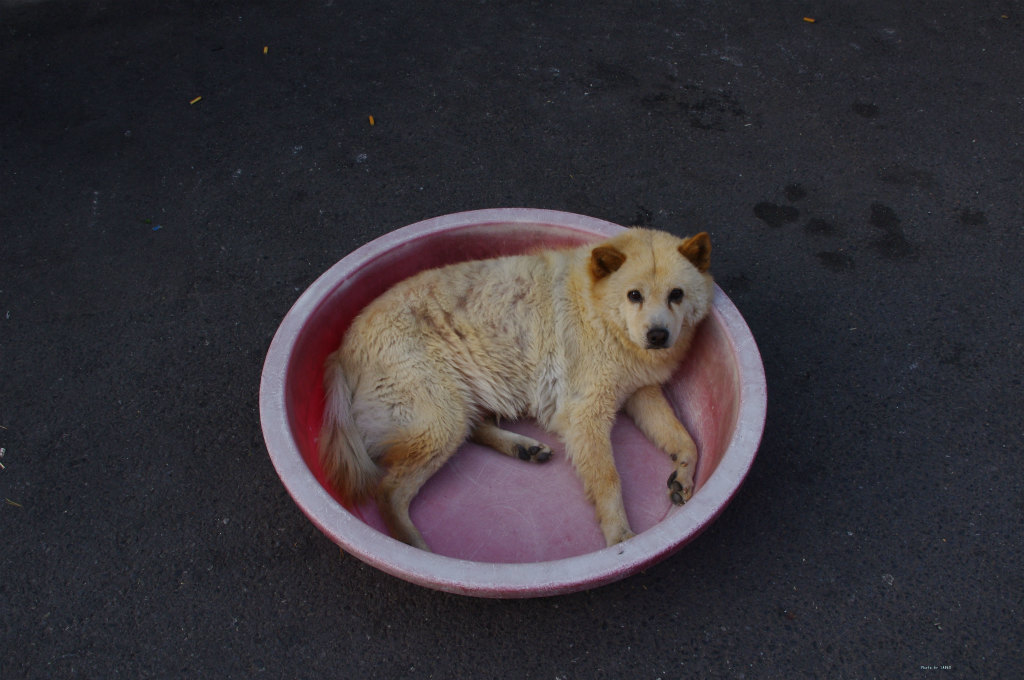 この前にバイクが置いてあって、出られなくなっていたわんこ。でも楽しそうでした。