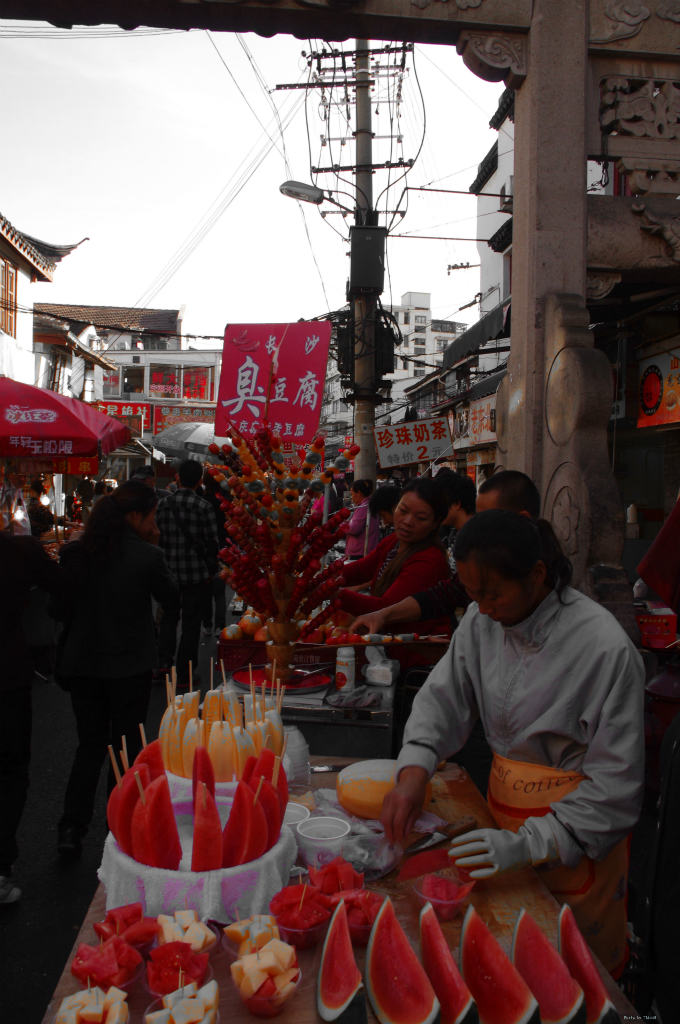方浜中路、屋台街の入り口。