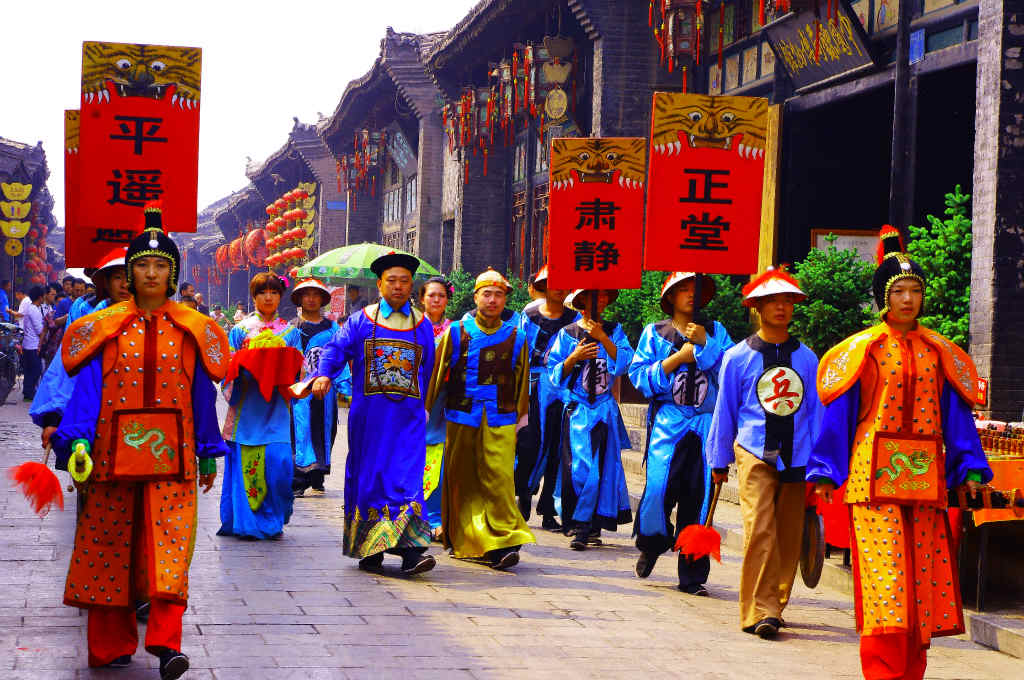 平遥で朝9時ぐらいに歩くと、市楼の近くでいろんなショーが楽しめます。